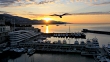 Monaco - June 2015: Aerial UAV Monte Carlo sunrise Mediterranean Pier luxury wealth yacht marina harbor travel