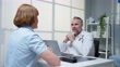 Caucasian senior woman visit and consult health problem with doctor. Mature elderly therapist practitioner working to explain diagnosis and give treatment to sick woman during appointment in hospital. - 4K stock video