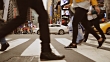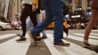 Real time video of commuters walking in Times Square, New York.