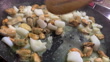 Close-up detail shot frying cuttlefish and mussels for a Valencian fideua