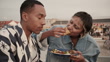 Couple enjoying fast food at skateboard park - 4K stock video