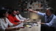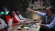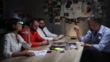 FBI Detective interrogating a prisoner in interrogation room,in the presence of his lawyer, showing to him proof against him