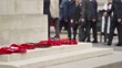 LONDON, ENGLAND - APRIL 25: (SLOW-MO) Dignitaries and military personnel march behind the wreaths laying on The Cenotaph during the Service of Commemoration and Thanksgiving on ANZAC Day at Westminster Abbey on April 25, 2024 in London, England. (Footage by David Sampedro/Getty Images)