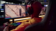 Diverse gamer group with african ethnicity players playing competitive MOBA PvP top down view computer game on a stage. Wearing headset and talking into the microphone to communicate with the yellow pro team.