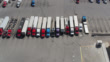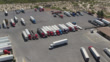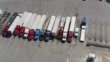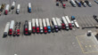 Aerial shot of semi-trucks refueling at a truck stop on the New Mexico/Texas border.