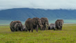 Elephants peacefully grazing on a lush meadow at Tanzania. Herd of pachyderms strolling gracefully through the verdant landscape.Shot in 8K Resolution - RED V-RAPTOR 8K S35.