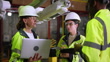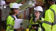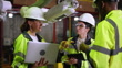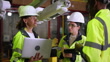 Engineers team discussing over robotic arm assembly and installation plan at factory. - 4K stock video