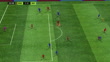 Animation of a fake 3d football video game. Passing the ball and scoring. Sports video games gameplay loop