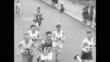 Title card: "German Looms as Olympic Star After Winning 26-mile Run - Paul de Bruyn outpaces veterans in marathon from Hopkinton to Boston" / man fires gun to start race / runners begins / onlookers sit on rocks watching race / pace cars drive next to racers / winner / Paul de Bruyn crosses finish line