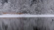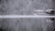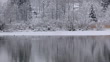 WS PAN Hallstatter Lake and huts in snow, Austria - HD stock video