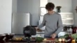 Influencer making video while cutting bell pepper in kitchen - 4K stock video