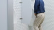 Male genitourinary system diseases concept - rear view asian elderly man has dysuria and urination disorder at restroom