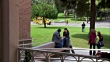 MEDIUM ANGLE. TWO STUDENTS ON BENCH TALKING BY SIDE OF BRICK BUILDING. OTHER HIGH SCHOOL STUDENTS WALKING AROUND. TREES ON GRASS BEHIND THEM. LITTLE SCHOOL BUS AT INTERSECTION IN BG.<P><A HREF="HTTPS://WWW.SONYPICTURESSTOCKFOOTAGE.COM/FOOTAGE?KID=4365">FOR DAY-NIGHT MATCHING SHOTS, CLICK HERE.</A><P>