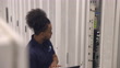 Medium shot of male IT profession using laptop while working on server in data center - 4K stock video