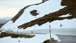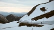 A narrow mountain pass road at sunset with snow. Puerto de Lunada in Cantabria, Spain.