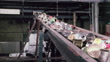 Sequence showing a medium shot of old food cans arriving in a recycling centre on a conveyor belt. Cut to a medium shot of shards of steel being ejected from an industrial shredder, UK; 1976. (LSF1061T - AEVZ001J)