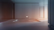 A sleek, modern laptop stands alone on a white pedestal in a minimalistic bright room. - 4K stock video