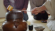 Tea Ceremony Host Preparing Tea While Guests Eat - 4K stock video