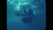 1980s: Men floating on submersible, zoom out to men on boat. Submersible underwater. Man talking into radio. Tilt down controls on boat