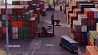 View of an intermodal shipping yard in the Port of Long Beach, California.View of an intermodal shipping yard in the Port of Long Beach, California. The drone pulls back, away from a top handler among the rows and rows of containers as it unloads a UTR.