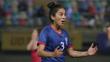 Two impassioned female soccer teammates hold one another's face in celebration - 4K stock video