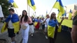 LISBON, PORTUGAL - AUGUST 24: Ukrainian residents in Portugal hold flags and hold a large national flag on August 25, 2025 in Lisbon, Portugal. Ukrainian residents in Portugal walk from Marques de Pombal Square to Rossio to commemorate their country's 34th Independence Day, remembering thousands of civilians and soldiers killed in the war started by Russia invading its territory. (Footage by Horacio Villalobos/Getty Images)