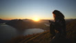 Woman sits alone at viewpoint ignoring the view looking at her smartphone - 4K stock video