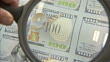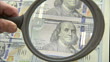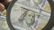 CU ZO worker uses magnifying lens to inspect sheet of one hundred dollar bills / Washington D.C., Washington D.C., United States - HD stock video